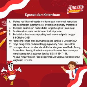 - Upload hasil karya beserta foto kamu saat mewarnai , kemudian tag dan mention @amazyresto_official dan @amazy_frozenfood