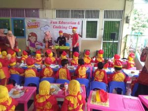 Ada pemandangan yang menarik ketika anak-anak di sekolah Taman Kanak-Kanak (TK) Amanah  mengikuti kegiatan Cooking Class bersama Team AMAZY CIKOKOL TANGERANG jl MH Thamrin 9, Cikokol Tangerang, pada hari Kamis, (13/12).