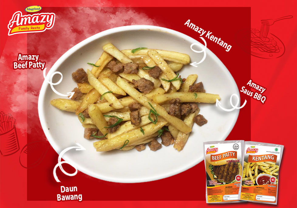 Beef BBQ Loaded Potato Bahan                                      Qty Amazy Kentang                       150 gr Saus BBQ Amazy                     75 sdm Amazy Beef Patty                    1 pcs Daun Bawang                          secukupnya Saus Sambal   Cara Membuat : Panaskan minyak dengan suhu 150 C Goreng Amazy Kentang selama 6-7menit hingga kecoklatan. Angkat, letakan di wadah Potong Amazy Beef Patty berbentuk dadu, tumis […]