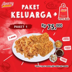 Amazy Paket Keluarga sudah termasuk Totebag Paket 1 terdiri dari 5 Potong Ayam, dapat 3 porsi sambal dapat pilih salah…