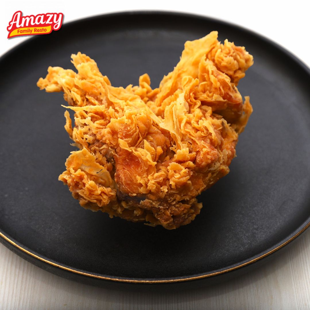 Amazy Fried Chicken kerenyahan chicken crispy dengan cita rasa bumbu original yang terdiri dari 20 rempah-rempah asli Indonesia. Kesan pertama menikmati ayam goreng crispy ini adalah balutan tepung crispy yang merekah, renyah dan lembut. Daging ayamnya terlihat putih dan bersih menandakan kualitas ayam yang terjaga dan selalu fresh. Rasa daging ayamnya yang gurih sampai ke dalam tulangnya sangat terasa bumbu originalnya yang gurih. Tidak cukup satu potong untuk menikmati Fried Chicken Amazy.