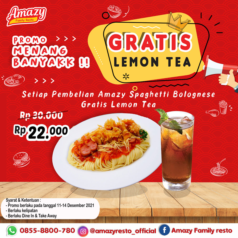 Mulai 11-14 Desember, setiap pembelian Amazy Spaghetti Bolognese GRATIS Lemon Tea!