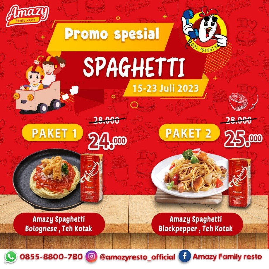 Amazy Lovers! Kalian pencinta spaghetti? Jangan lewatkan promo special dari Amazy Family Resto. Kamu BISA LEBIH HEMAT kalau kamu pesan menu ini.
