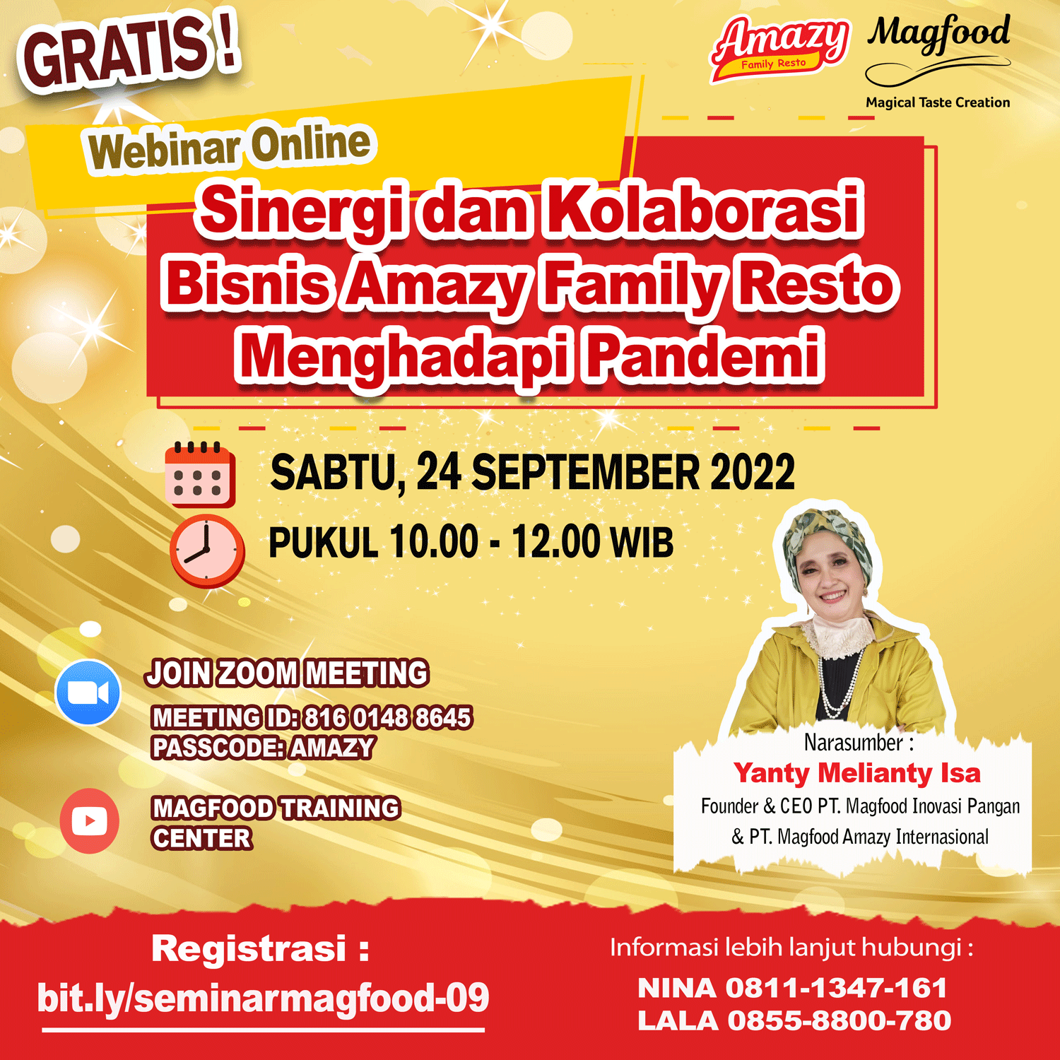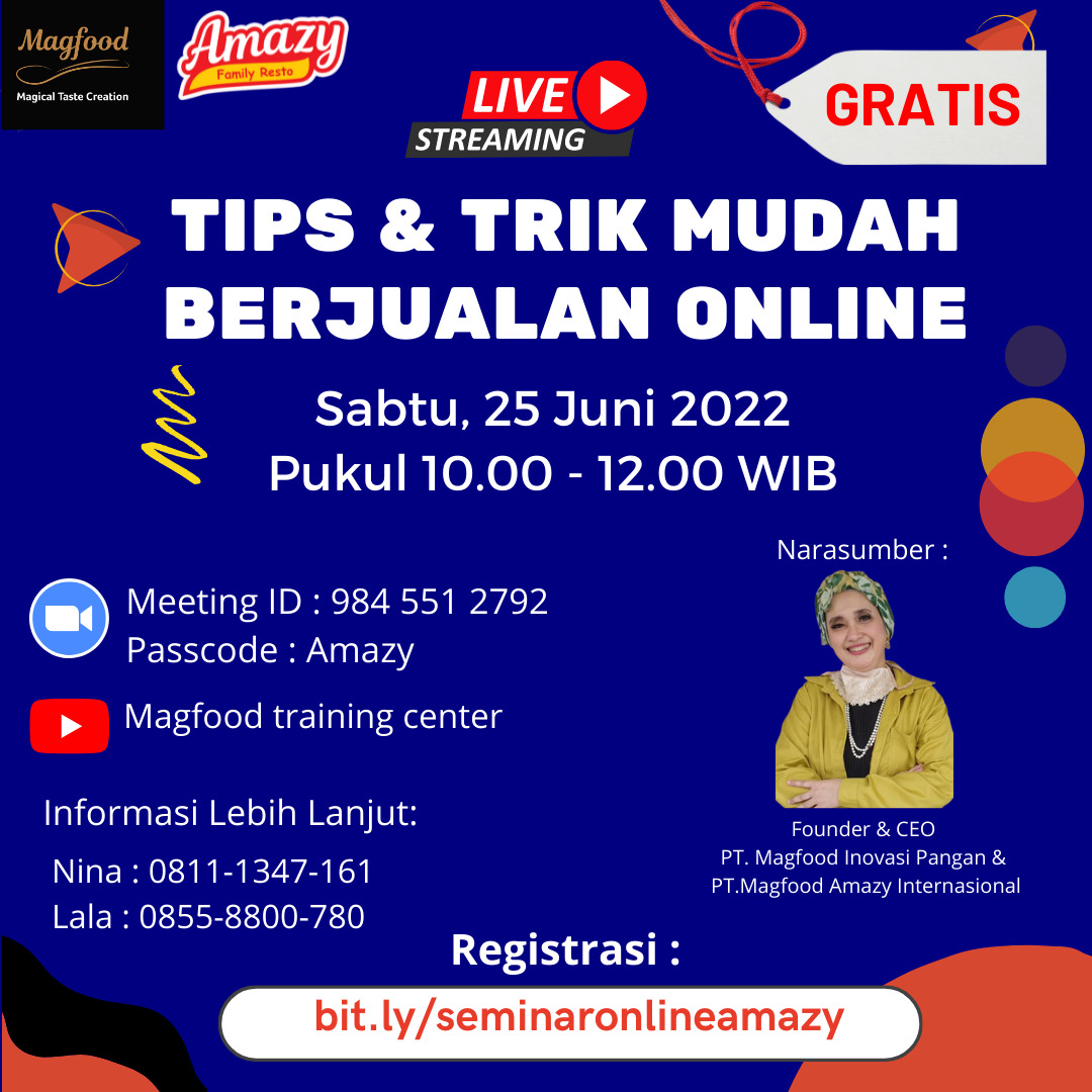 Instagram saat ini merupakan powerful digital marketing tools yang banyak digunakan untuk meningkatkan awareness serta penjualan produk. Lalu bagaimana tips meningkatkan penjualan melalui instagram? Yuk, Ikuti Webinar Online Magfood Training Center “Strategi meningkatkan penjualan melalui Instagram” 🗓️Hari/Tanggal : Sabtu, 29 Oktober 2022 ⏰Pukul : 10.00 WIB – selesai 📍Ruang : Meeting zoom Registrasi : 🔊Narasumber […]
