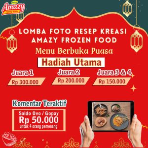 Nah buat kamu yang hobi masak, khusunya para bunda kreatif, ini saatnya membuktikan kreativitasmu dengan mengikuti “Lomba Foto Resep Kreasi Amazy Frozen Food: Menu Berbuka Puasa” (7 – 24 April 2022) dan dapatkan total hadiah senilai Rp1.000.000! Ada hadiah berupa voucher Ovo/Gopay senilai Rp50.000 untuk 4 orang pemenang dengan komentar teraktif, loh!